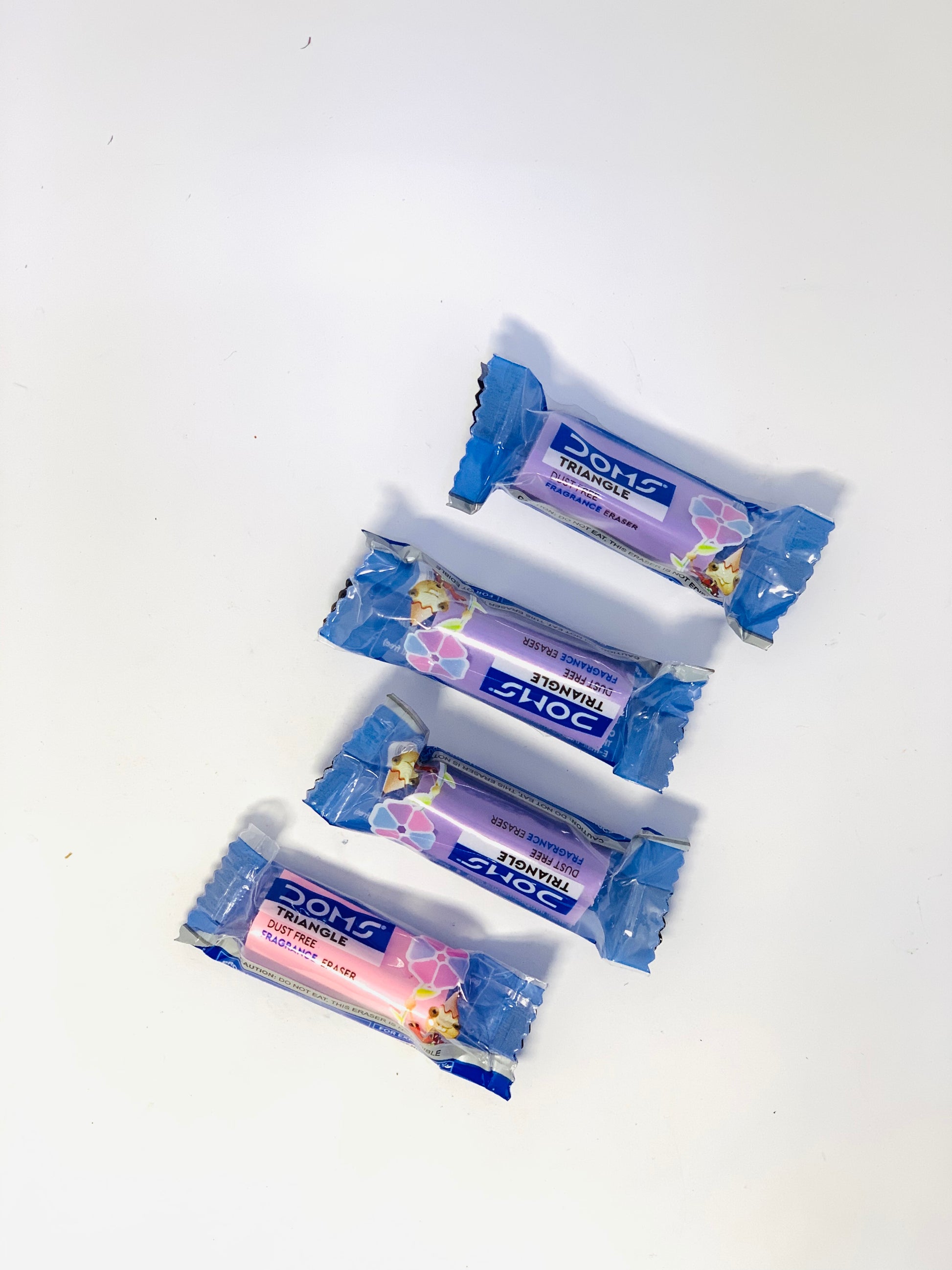 قطعة من المطاط أو مادة أخرى تستخدم لمسح العلامات التي يتركها قلم الرصاص،